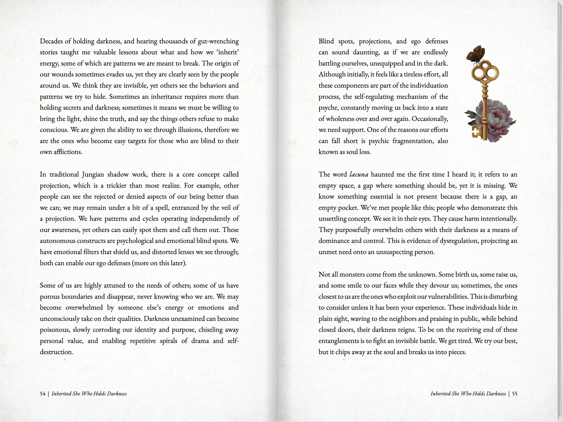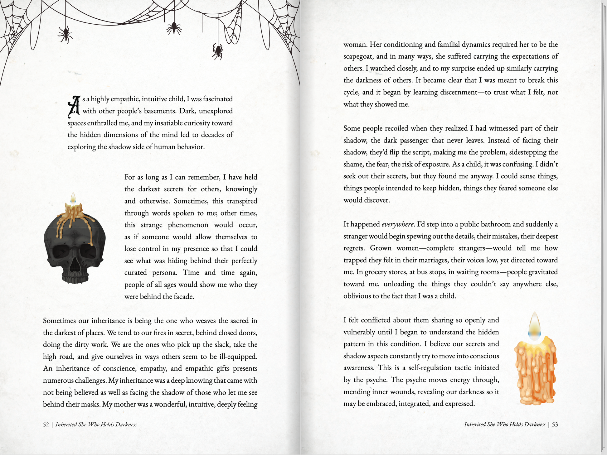Apothecary for the Afflicted - Shadow Work for Invisible Wounds is a unique and transformative tool disguised as a book. The pages are filled with rich and potent shadow-work practices to uncover the authentic self while healing invisible wounds. Throughout the book, the reader encounters hauntingly beautiful imagery blended with the symbolism of fairy tales.